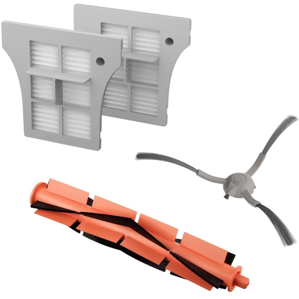 комплектация: 1 главная щетка, 1 боковая щетка, 2 фильтра EPA