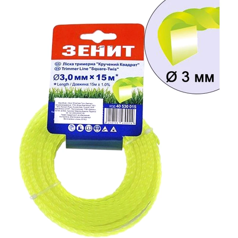 Леска косильная ЗЕНІТ Крученный квадрат 3,0 мм х 15 м (40530015)