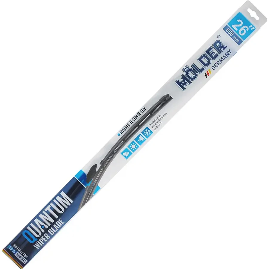 Представляем вашему вниманию щетку стеклоочистителя MOLDER Quantum гибридного типа длиной 650 мм (MQ650), которая воплощает в себе передовые технологии и новейшие разработки в области автомобильных аксессуаров. Это не просто щетка, а инструмент, который обеспечивает максимальную видимость и безопасность во время вождения.