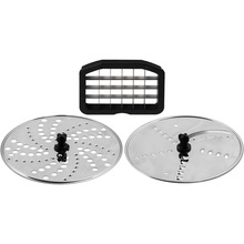 Блендер, Венчик, Стакан, Измельчитель (2000 мл), Мини-измельчитель (400 мл), Двухсторонние диски для грубой и мелкой нарезки овощей и фруктов (2 шт), Насадка для нарезки кубиками