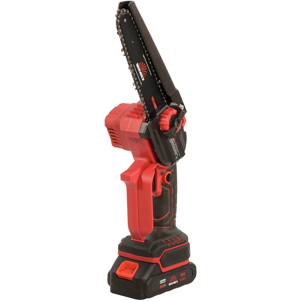 Питание цепной пилы осуществляется от аккумулятора, что позволяет избежать ограничений, связанных с проводами или необходимостью подключения к электросети. Мощность устройства составляет 350 Вт, что обеспечивает достаточную силу для выполнения большинства задач, связанных с обрезкой и распиловкой. Длина шины составляет 15 см, что делает эту пилу идеальной для работы в ограниченном пространстве и с небольшими деревьями и кустарниками.