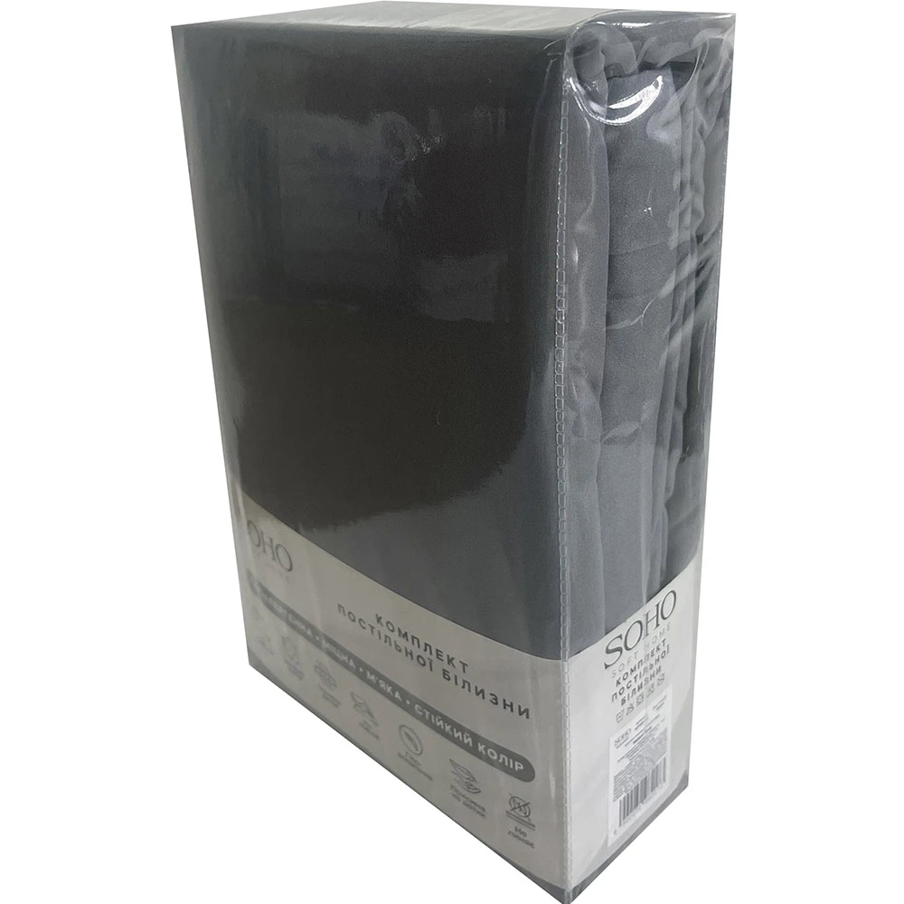 Комплект постельного белья SOHO изготовлен из 100% полиэстера с плотностью 85 г/м². Этот материал известен своей долговечностью и простотой в уходе. Он обладает антиаллергенными свойствами, что делает его идеальным выбором для людей с повышенной чувствительностью или аллергией. Цвет серый DK Grey добавляет изысканности и современности в любой интерьер спальни.