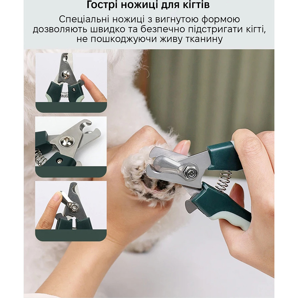 массажная щетка, расческа от колтунов, триммер-щетка, пилочка для когтей, щетка для удаления линьки, обычная расческа, ножницы для подстригания, щетка с мягкой щетиной