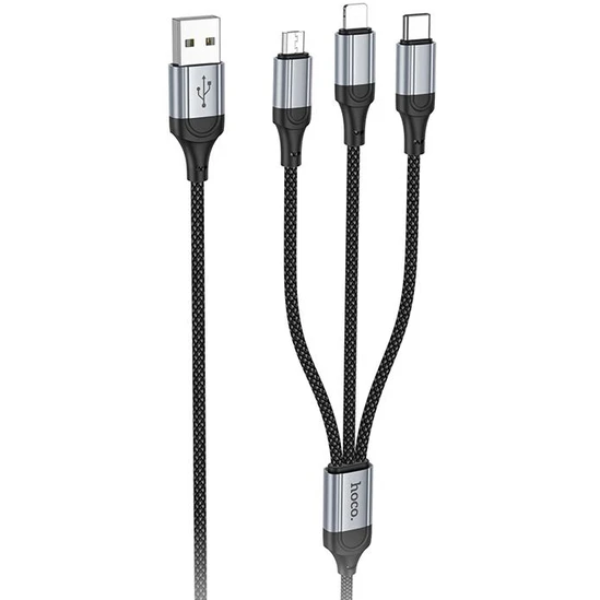 Кабель HOCO X102 Fresh 3 in 1 USB - Lightning/micro-USB/USB-Type-C 1 м Black – это не просто аксессуар, а необходимый элемент для всех, кто ценит комфорт и функциональность. Его универсальность и качество делают его незаменимым помощником в повседневной жизни, обеспечивая легкость и удобство в использовании.