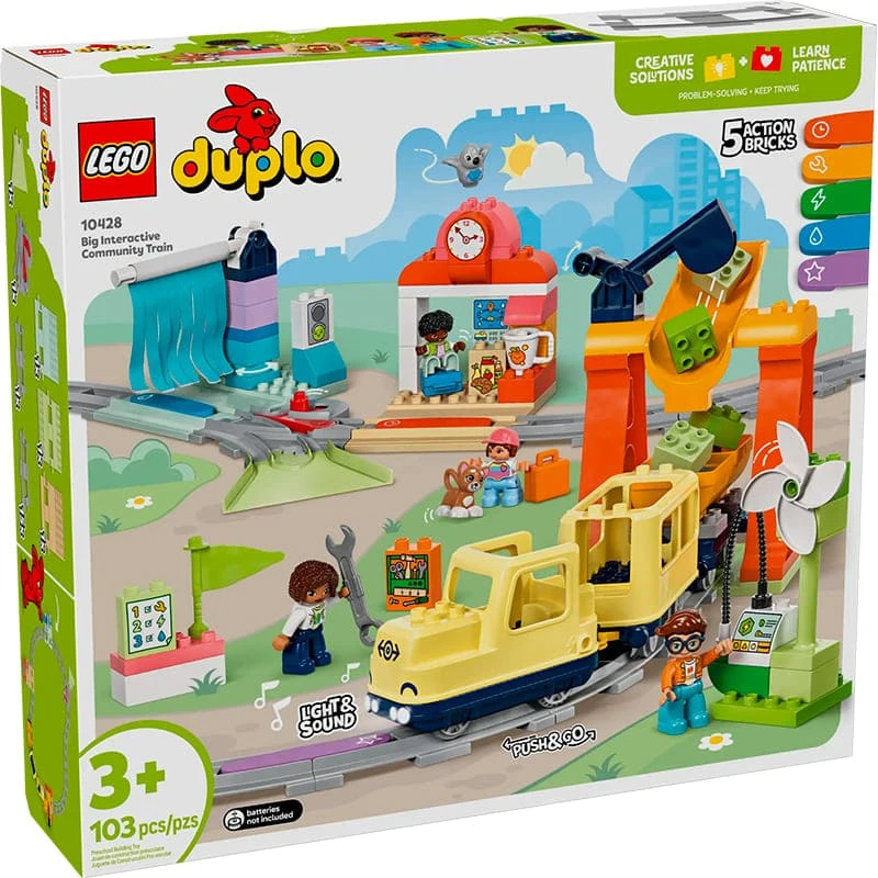 Конструктор LEGO DUPLO Большой интерактивный общественный поезд (10428) с 103 деталями предлагает уникальную возможность для малышей познать мир через игру. Этот классический набор, посвященный тематике поездов, идеально подходит для детей от 3 лет и старше, способствуя развитию моторики и воображения.