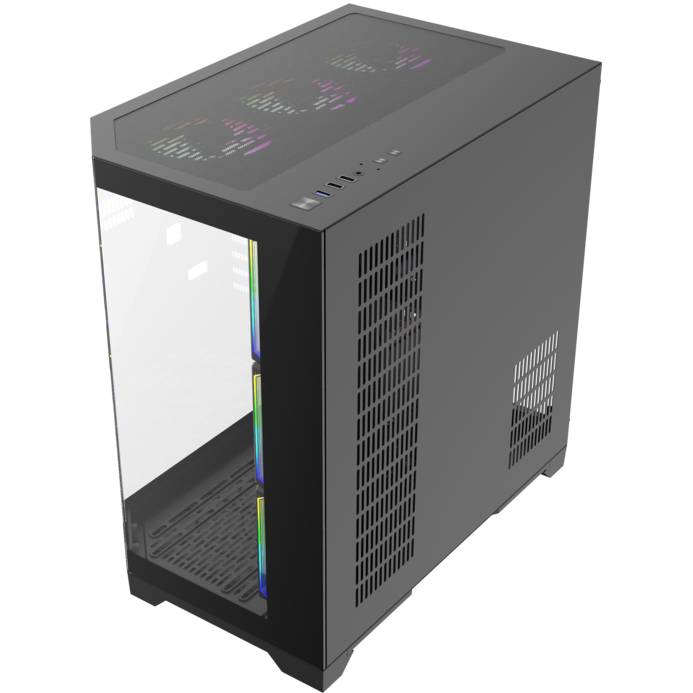 Корпус GAMEMAX Midi ATX предлагает гибкие возможности для установки различных систем охлаждения. В комплекте поставляются три вентилятора 120 мм, установленные сбоку, и один вентилятор 120 мм сзади, обеспечивая оптимальную циркуляцию воздуха. Дополнительно предусмотрены посадочные места для вентиляторов на задней, верхней, боковой и нижней панелях, что позволяет пользователям создавать индивидуальные конфигурации охлаждения в зависимости от своих потребностей.