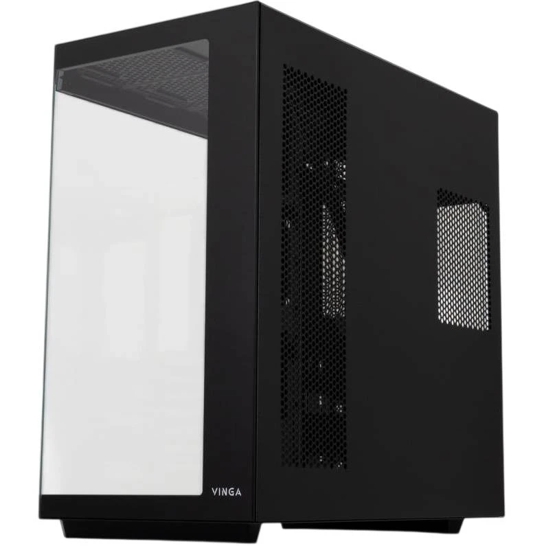 Корпус VINGA Warlike выполнен из высококачественной стали и стекла, что обеспечивает его прочность и долговечность. Высота корпуса составляет 44,3 см, ширина — 27,7 см, а глубина — 42,6 см, что делает его компактным и удобным для размещения на рабочем столе. Встроенные разъемы USB 2.0 и комбинированный аудиоразъем обеспечивают легкий доступ к периферийным устройствам.