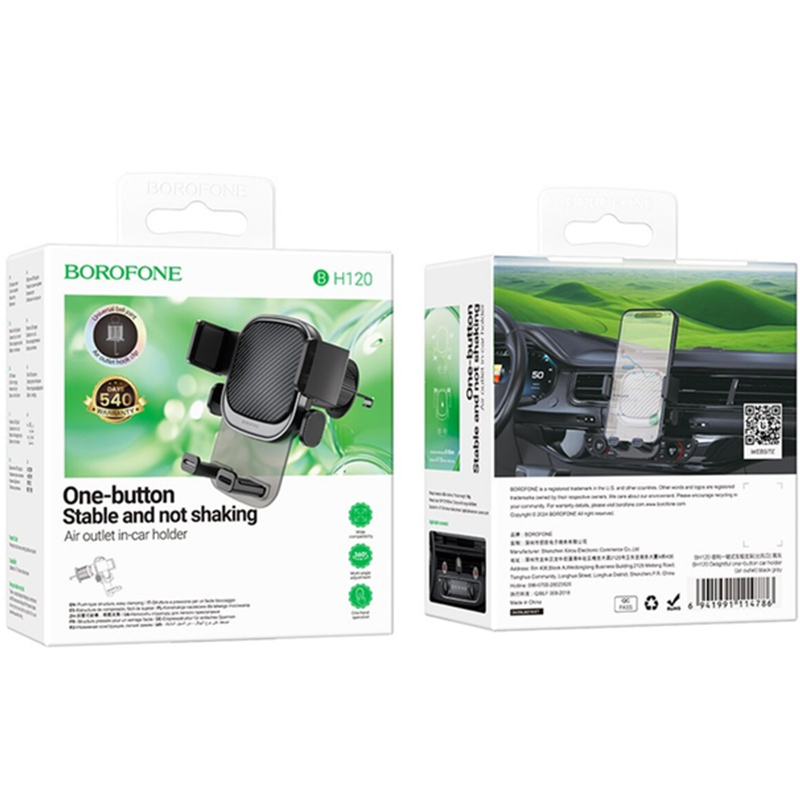 Держатель BOROFONE BH120 Delightful one-button car holder Black Gray (6941991114786)