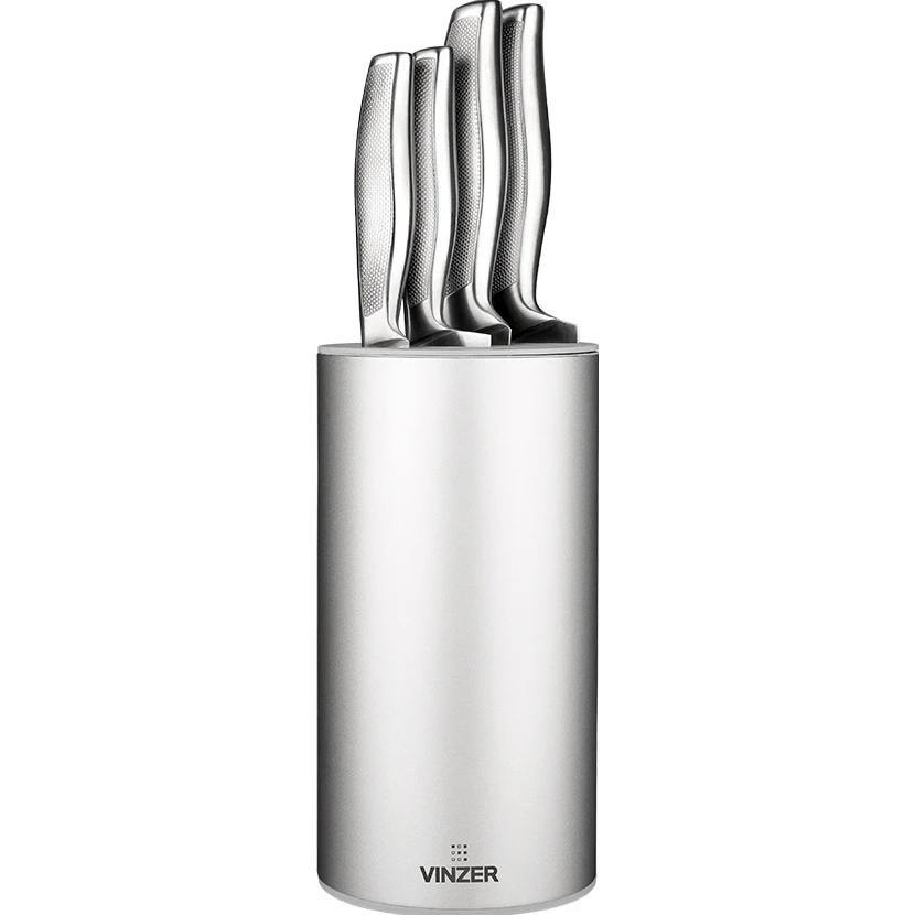 Особое внимание уделено и материалам ручек. Они изготовлены из нержавеющей стали, что обеспечивает не только прочность и долговечность, но и комфортное использование. Металлическая подставка/держатель не только дополняет эстетическую привлекательность набора, но и гарантирует удобное хранение и безопасность ножей.