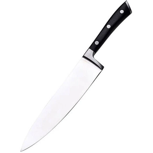Длина клинка 20 см позволяет выполнять широкий спектр задач на кухне, от нарезки овощей до разделки мяса. Эргономичная ручка из бакелита обеспечивает надежный захват и комфортное использование даже при длительной работе. Бакелит известен своей устойчивостью к воздействию высоких температур и механических повреждений, что делает его идеальным материалом для кухонных инструментов.