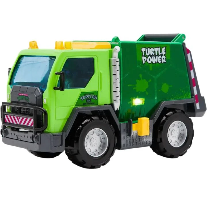 Из люка мусоровоза выглядывает черепашка-ниндзя, готовая вступить в бой. Этот элемент добавляет интерактивности и позволяет ребенку чувствовать себя частью команды героев, что способствует развитию социальных навыков и сотрудничества.