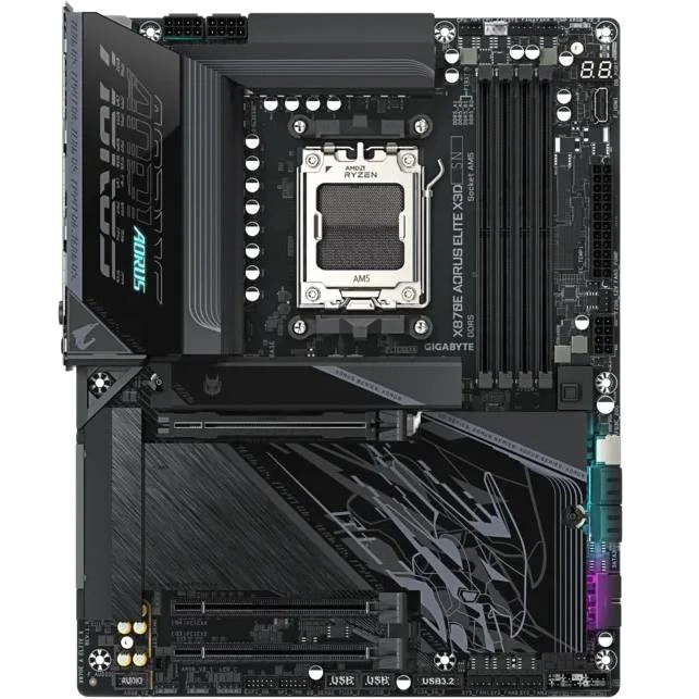 Материнская плата GIGABYTE X870E A ELITE X представляет собой вершину инженерной мысли, предназначенную для энтузиастов и профессионалов, стремящихся к максимальной производительности своих настольных компьютеров. Эта плата совместима с процессорами AMD Ryzen 9000, 8000 и 7000 серий, что обеспечивает гибкость выбора и поддержку новейших технологий.