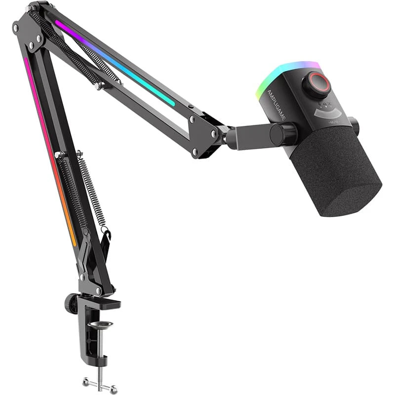 В комплект поставки входят USB-кабель, пантограф с RGB-подсветкой, С-образный зажим (струбцина) и руководство пользователя, что позволяет сразу же приступить к использованию микрофона. Пантограф с регулируемой RGB-подсветкой не только добавляет эстетическую привлекательность, но и обеспечивает удобство в установке и использовании устройства.