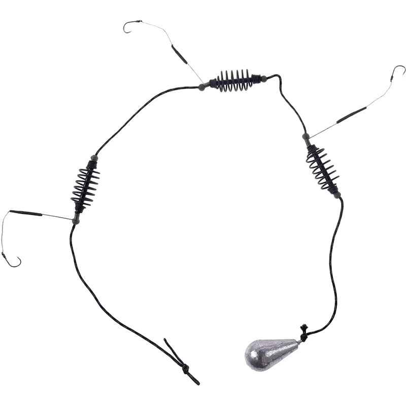 Оснащена крючками Leader №7, кормушками и грузилом
