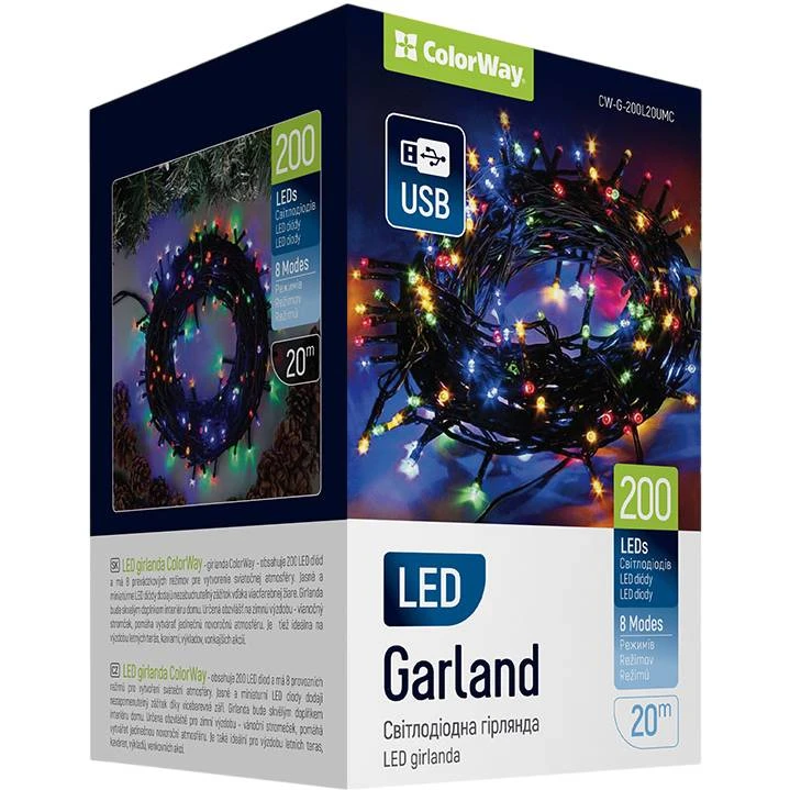 Светодиодная гирлянда COLORWAY LED 200 20м (CW-G-200L20UMC) — это не просто элемент декора, а функциональное решение для создания уникальной атмосферы в вашем доме или офисе. Она сочетает в себе современные технологии, стильный дизайн и высокое качество, обеспечивая долгий срок службы и удовлетворение от использования.