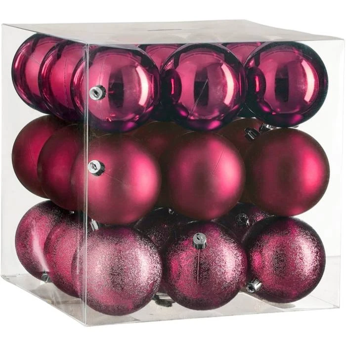 В комплекте представлены три типа шаров: матовые, глянцевые и рельефные блестящие, по 9 штук каждого вида. Такое разнообразие текстур и отделки позволяет создавать уникальные композиции и подчеркивать индивидуальность вашего праздничного декора. Матовые шары придают интерьеру строгость и стиль, глянцевые — блеск и яркость, а рельефные блестящие — изысканность и праздничность.