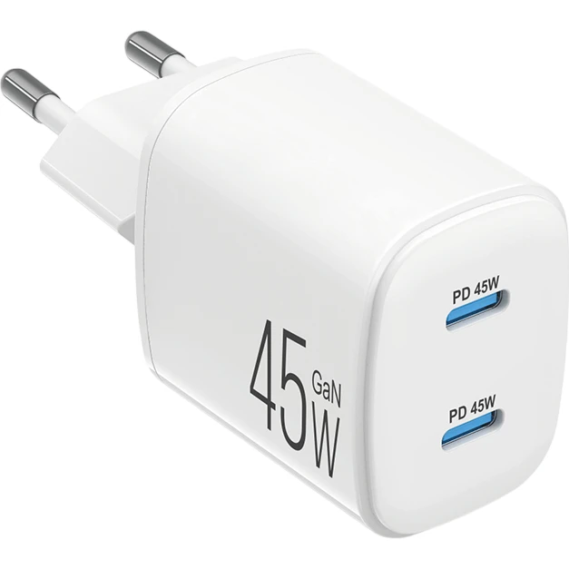 Зарядное устройство оснащено двумя выходными разъемами USB Type-C, что позволяет одновременно заряжать два устройства. Это удобно для тех, кто использует несколько гаджетов, будь то смартфон, планшет или другие устройства, поддерживающие зарядку через USB Type-C. Возможность одновременной зарядки двух устройств делает это зарядное устройство идеальным выбором для семей или людей, которые часто находятся в пути.
