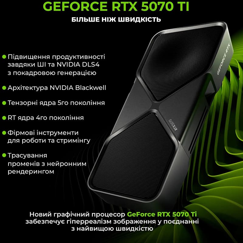 Играйте на полную мощность с видеокартой NVIDIA GeForce RTX5070 Ti, оснащенной 16 Гб видеопамяти. Эта дискретная видеокарта обеспечивает потрясающее качество изображения и плавность графики, позволяя наслаждаться играми в высоком разрешении и с максимальными настройками. Поддержка технологий трассировки лучей и AI-ускорения выводит игровой процесс на новый уровень реализма и детализации.