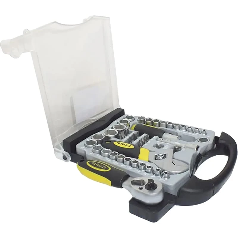 Благодаря использованию стали в производстве, инструменты из набора демонстрируют высокую прочность и устойчивость к коррозии. Это гарантирует длительный срок службы даже при интенсивной эксплуатации. В набор входят торцевые головки, инструменты для работы с торцевыми головками, биты и разводные ключи, что позволяет выполнять широкий спектр задач.
