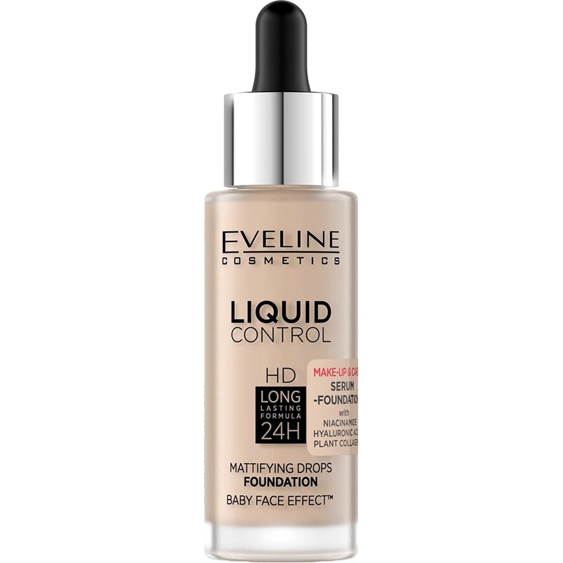 Жидкая тональная основа Eveline Liquid Control №010 Light Beige Niacynamid 32 мл (5903416058243)