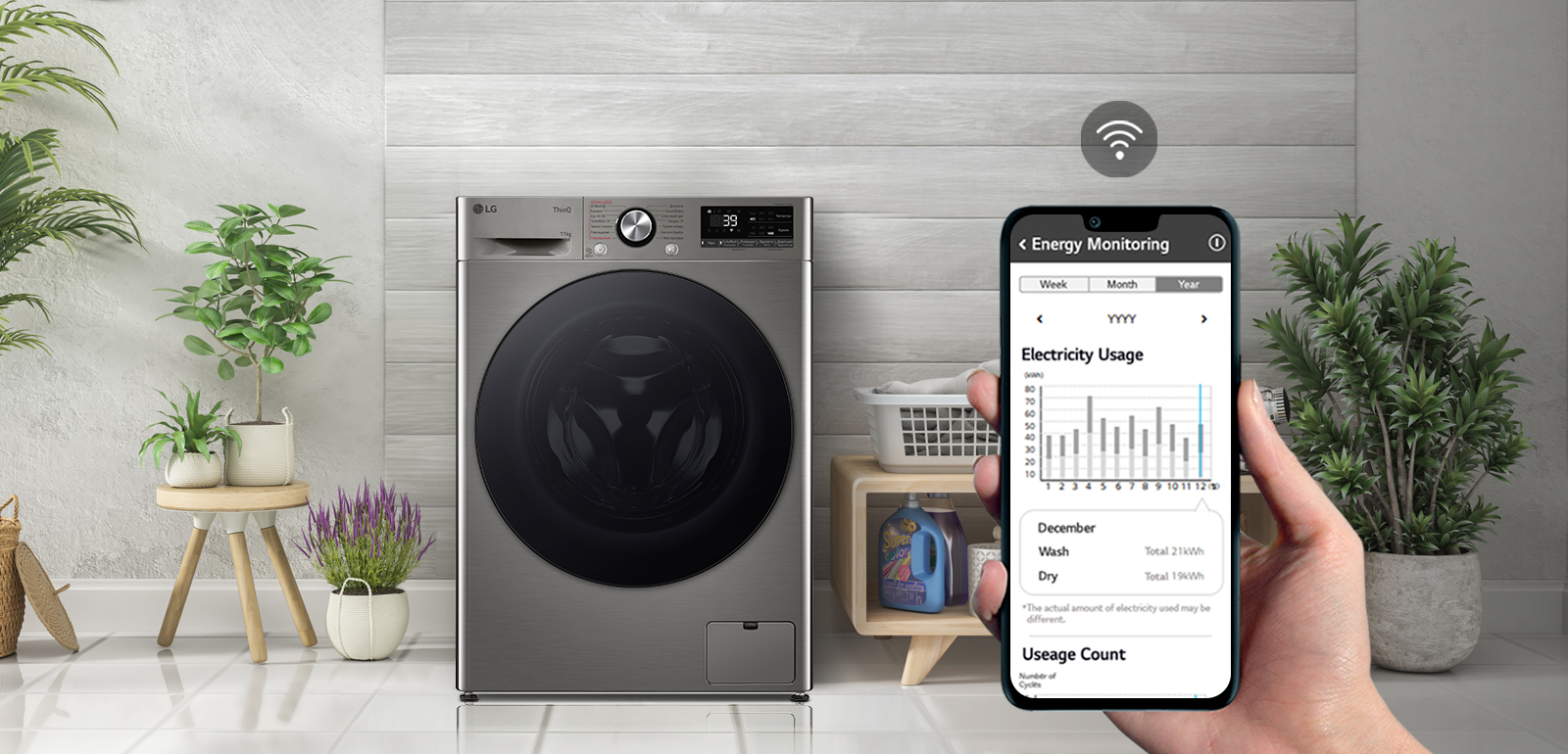 Контролируйте работу стиральной машины по понятной статистике, отображающей все энергорасходы за конкретный период. Получайте умные рекомендации по оптимизации циклов, загружайте новые программы и легко проверяйте состояние стиральной машины для неизменно лучшего опыта стирки с LG.