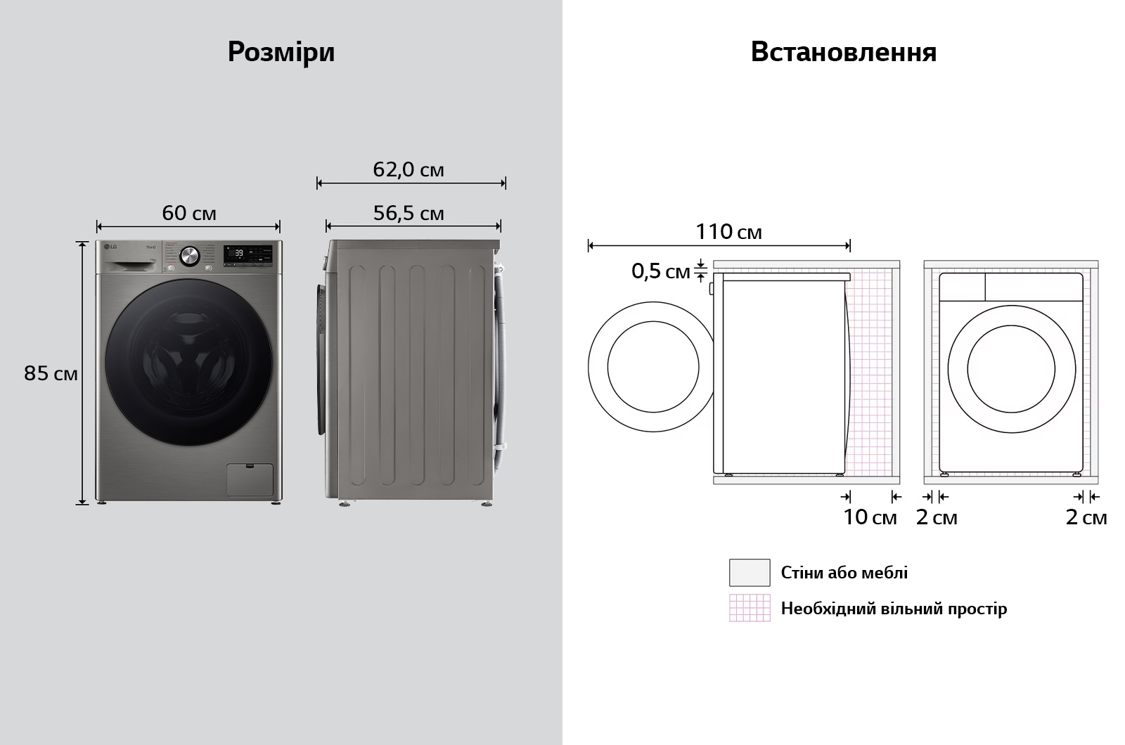*в отличие от других стиральных машин LG в категории от 50 до 60 см: объем загрузки увеличился от 9 до 11 кг