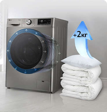 С LG даже самые нестандартные загрузки больше не станут проблемой благодаря увеличенной до 2 кг емкости барабана. А это лучший выбор для тех, кто хочет получить стиральную машину того же размера только с большей производительностью и объемом для стирки на большую семью.