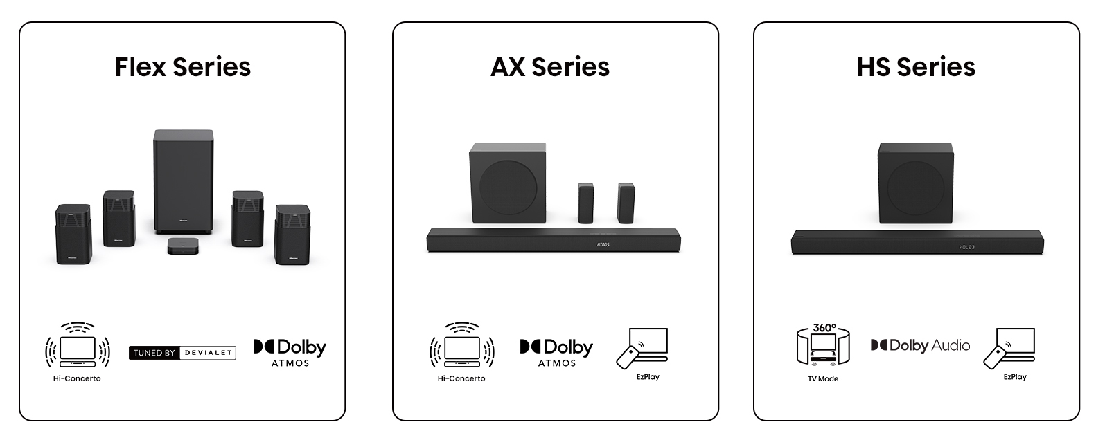 Окунайтесь в идеально сбалансированное объемное аудио, заполняющее все пространство в гостиной. Технология Hi-Concerto точно синхронизирует звук с телевизора и саундбара, чтобы вы наслаждались кинематографичным просмотром уровня кинозала. А для захватывающего эффекта мощного многоканального аудио Hisense поддерживает технологию Dolby Vision Atmos.