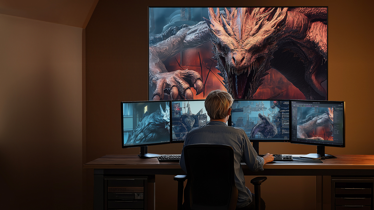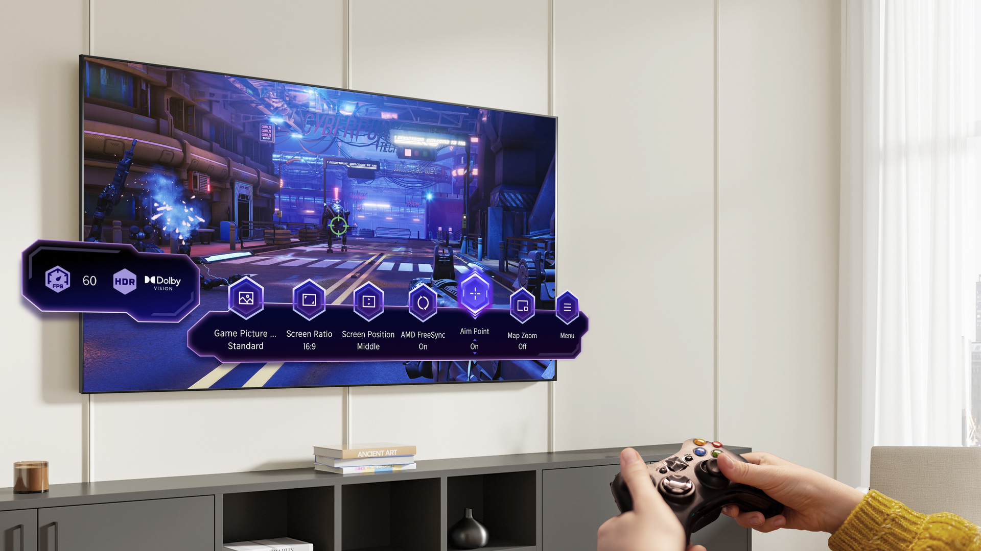 Вооружитесь к победе, выбирая лучшие настройки для гейминга в экранной игровой панели Game Bar. Гибко регулируйте скорость, соотношение сторон, формат изображения и контраст, чтобы окунаться в живые игровые миры без малейших задержек и с лучшим полем обзора для самых быстрых побед.