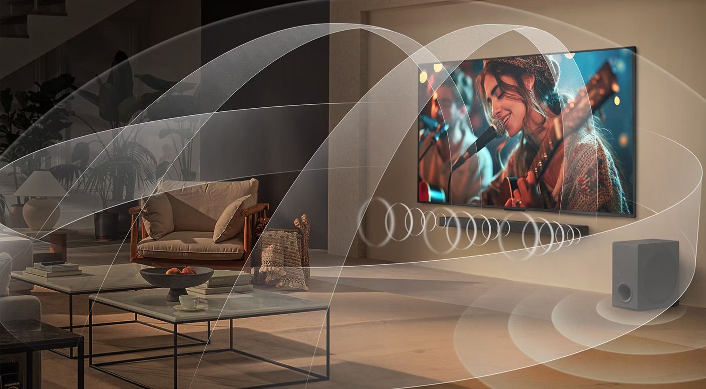 Наслаждайтесь идеальной синергией между саундбаром и динамиками