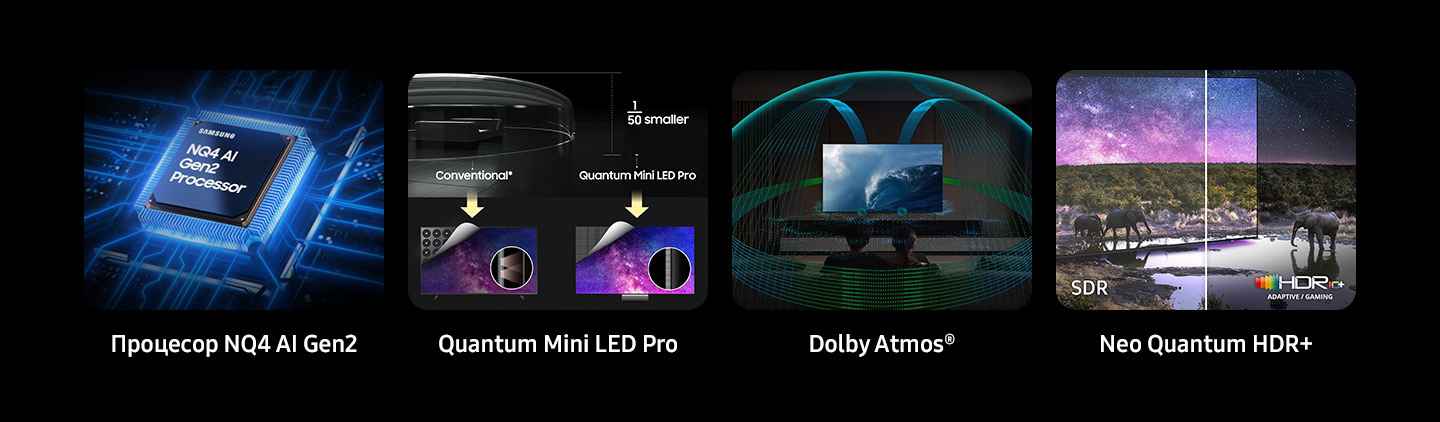 Окунайтесь в настоящую магию цвета с революционной системой подсветки, еще более точно управляющей светодиодами Quantum Mini. Воссоздавая истинную насыщенность черного и сияние белого, она повысит детализацию и выразительность сцен даже в самых темных и засвеченных сценах.