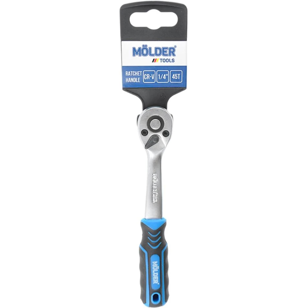 Кроме того, эргономичная рукоятка обеспечивает надежный хват, снижая усталость во время длительной работы. Это позволяет мастерам выполнять задачи быстрее и с меньшими усилиями. Трещотка MOLDER Cr-V 3/8" 72T идеально подходит как для профессионального, так и для домашнего использования, обеспечивая высокую производительность и комфорт.