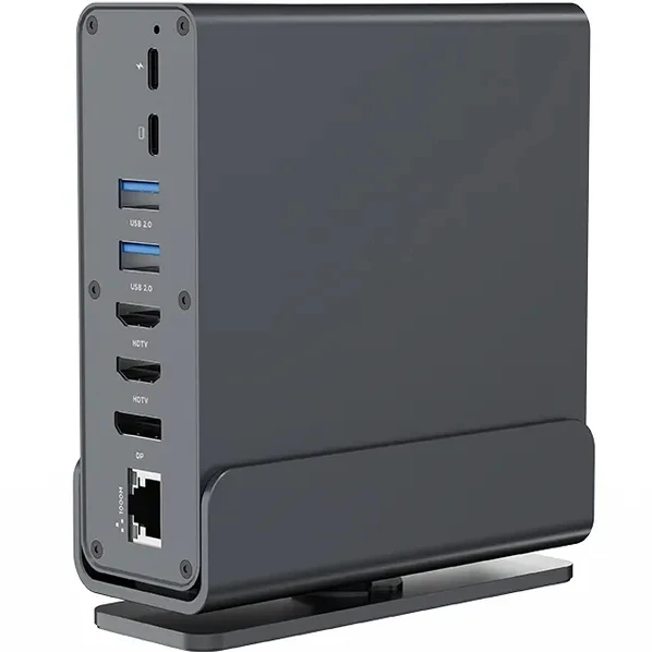 С этой док-станцией вы получаете невероятную гибкость благодаря 15 портам, которые обеспечивают подключение практически к любому устройству. Основной интерфейс подключения через USB Type-C позволяет легко интегрировать док-станцию с современными ноутбуками и другими совместимыми устройствами. Дополнительные разъемы, такие как HDMI, LAN (RJ-45), DisplayPort, microSD, SD card и 3.5 мм Jack, расширяют возможности подключения, позволяя вам использовать её в самых разнообразных ситуациях.