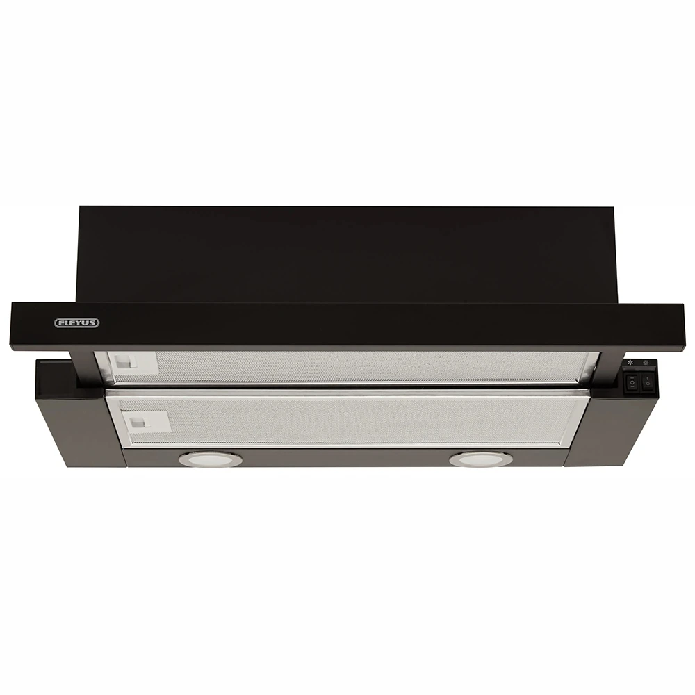Вытяжка оснащена кнопочным и кулисным переключателями, которые обеспечивают простой и интуитивно понятный контроль. Алюминиевый жировой фильтр эффективно задерживает частицы жира, сохраняя чистоту кухни и продлевая срок службы устройства. Черный цвет корпуса придает вытяжке ELEYUS LOTUS 700 50 BL элегантный вид, который легко впишется в любой интерьер.