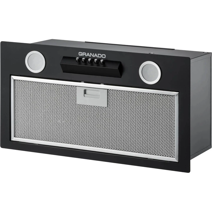 GRANADO Palamos 5503-1200 Black оснащена кнопочным управлением с кулисным переключателем, что обеспечивает легкость в настройке и эксплуатации. Модель предлагает три скорости работы, позволяя выбрать оптимальный режим в зависимости от интенсивности приготовления пищи. Алюминиевый (жировой) фильтр эффективно задерживает частицы жира и легко снимается для очистки, обеспечивая долговечность устройства.