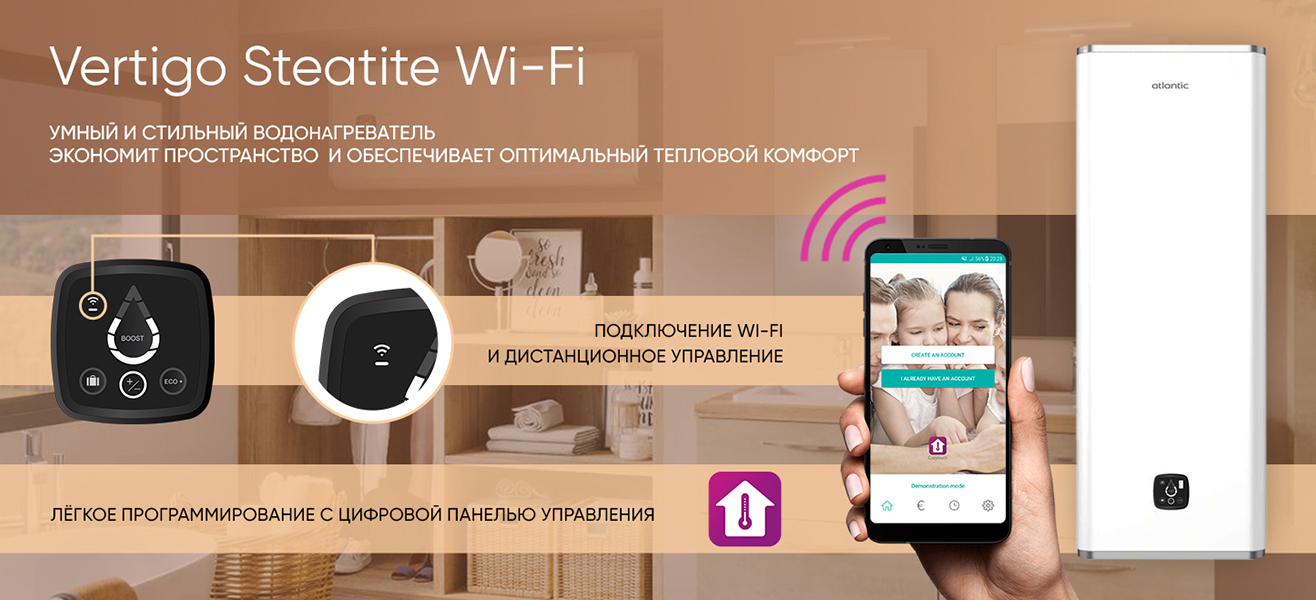 Vertigo Steatite Wi-Fi доступен в разных вариантах объема (40, 65, 80 и 100 л) и двух элегантных расцветках: белая и серебристая, дополняющих любое пространство. Особую экономию места обеспечит «плоский» дизайн, а возможность фиксации вертикально или горизонтально значительно упростит установку в любом интерьере.