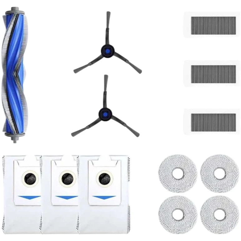 Цей набір включає в себе ключові компоненти, які допоможуть вашому роботу працювати на максимумі своїх можливостей. Основна щітка проти сплутування забезпечує ефективне збирання пилу та бруду, запобігаючи їхньому застряванню в механізмах пристрою. Крім того, дві чорні бокові щітки допомагають охопити важкодоступні місця, ефективно видаляючи забруднення з кутів та уздовж стін.