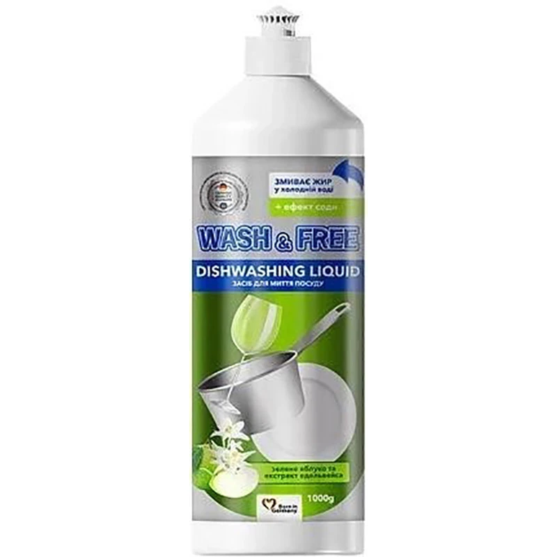 Засіб для миття посуду Wash & Free Зелене яблуко та екстракт едельвейсу 1 л (4260637723086)