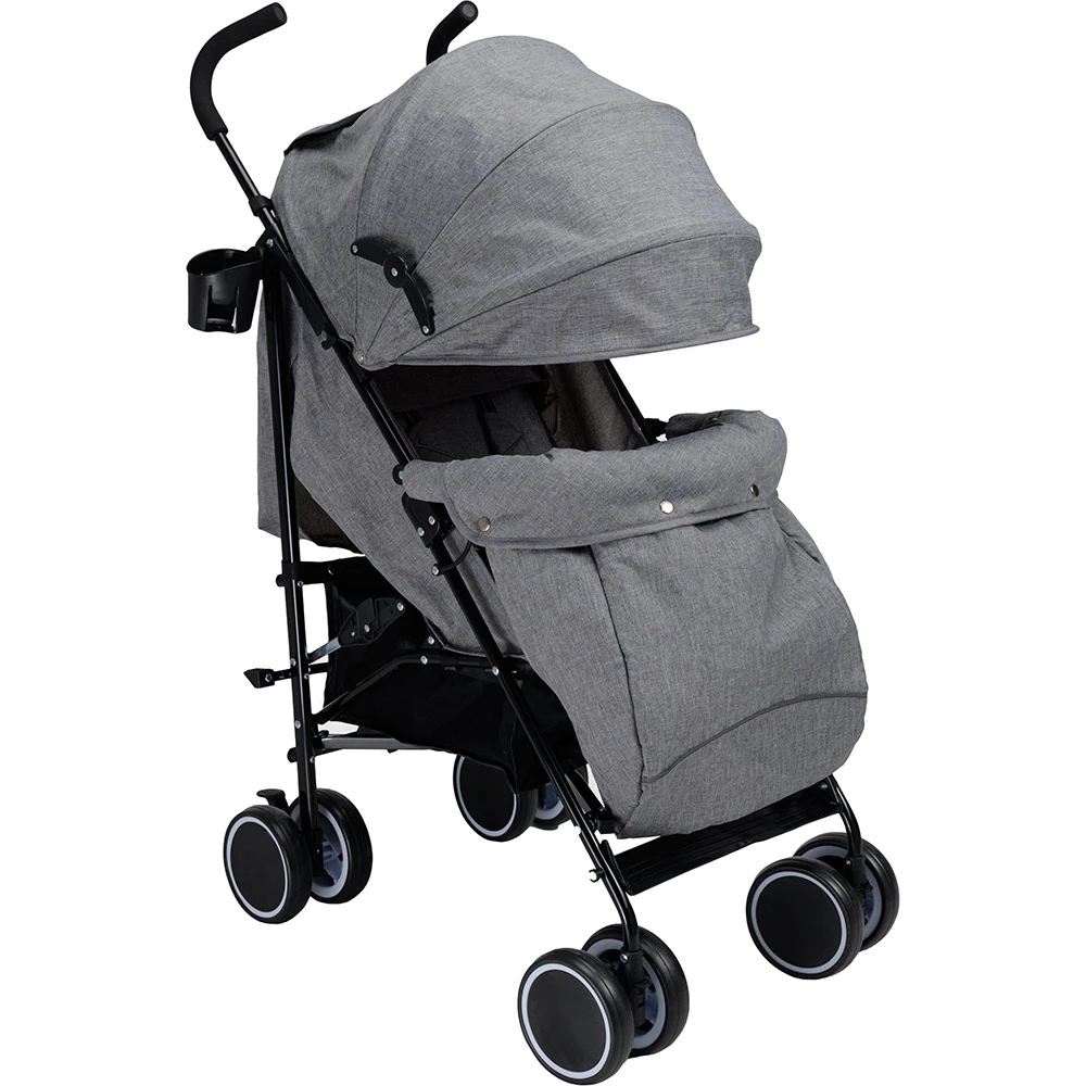 Рама візка виготовлена зі сталі, що забезпечує міцність та довговічність конструкції. Розмір сидіння становить 30 х 20 см, що забезпечує комфортне розміщення дитини. Комплектація включає підсклянник, що додає зручності під час прогулянок. Сірий колір візка додає елегантності та універсальності, підходячи до будь-якого стилю.