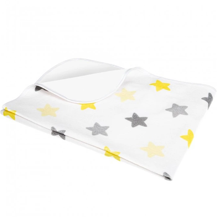 Килимок виготовлений з махрової тканини, яка складається на 82% з бавовни і на 18% з поліестеру, що робить його м'яким і приємним на дотик. Такий склад забезпечує оптимальну вентиляцію і комфорт для ніжної шкіри малюка, водночас забезпечуючи простоту догляду за виробом. Крім того, наявність клейонки з ПВХ робить килимок водонепроникним, що значно полегшує процес його очищення і догляду.