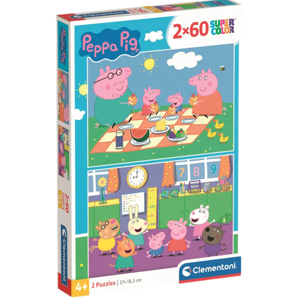 Пазл CLEMENTONI Peppa Pig 2 в 1 120 ел (24793) - це ідеальний вибір для маленьких шанувальників відомого мультфільму про Пеппу. Цей універсальний пазл підходить для дітей від 4 років, забезпечуючи їм цікаве та розвиваюче заняття. Завдяки класичній конструкції та яскравим кольорам, цей пазл стане улюбленою розвагою для будь-якої дитини.