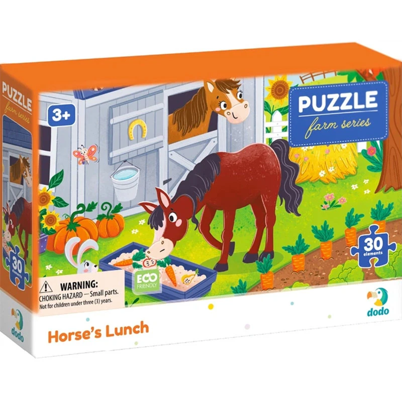 Складання пазлів є не лише цікавим, але й корисним заняттям для дітей. Пазл DODO Обід для конячки допомагає розвивати концентрацію та терпіння, що є важливими навичками у процесі навчання. Крім того, тематичний акцент на тваринах дозволяє дітям дізнатися більше про навколишній світ, збагачуючи їхній кругозір та уяву.