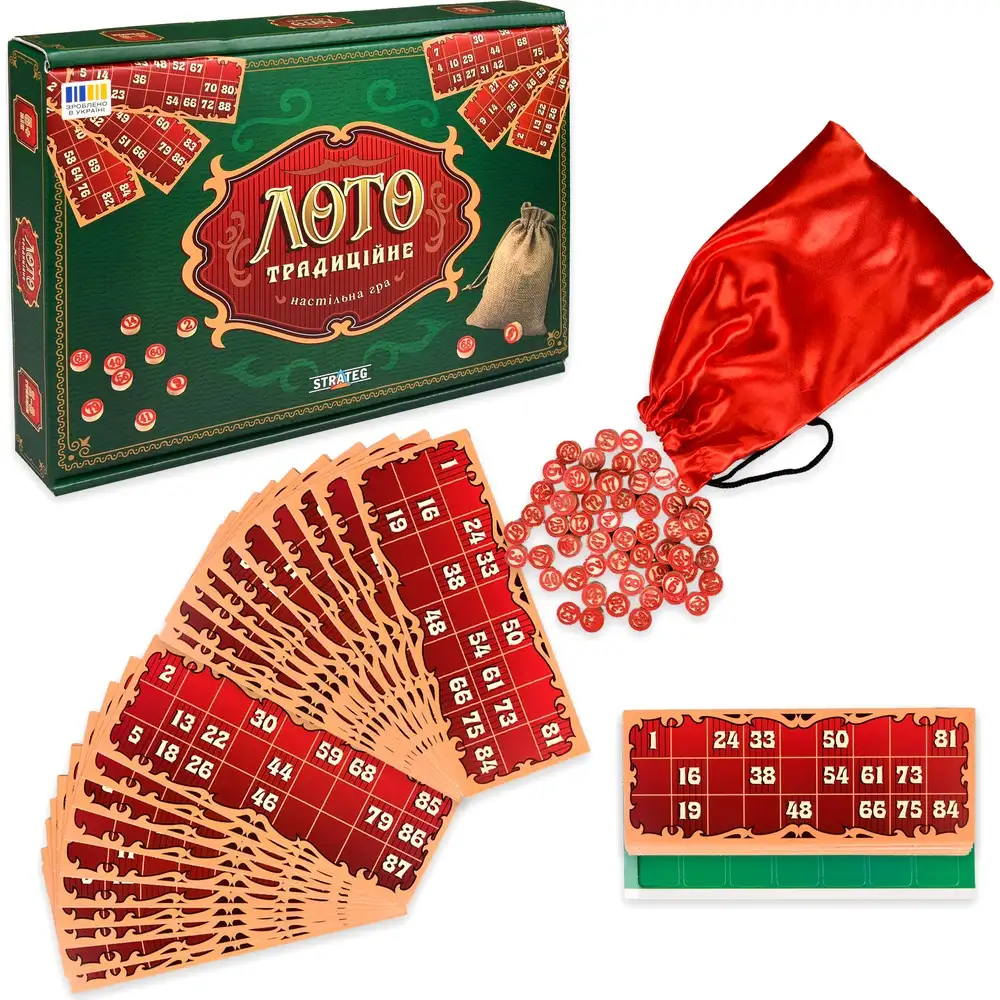 Strateg Лото традиційне — це класичний приклад настільної гри, яка об'єднує покоління. Вона не лише розважає, але й навчає, роблячи кожен ігровий сеанс унікальним і незабутнім. Оберіть цю гру для свого дозвілля, щоб насолодитися якісним часом у колі близьких людей.