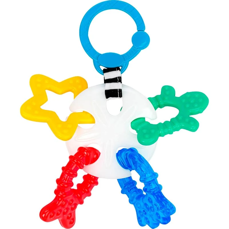 4 підвіски для прорізування зубів: 2 морські жителі з текстурованою поверхнею та 2 з охолоджуючим ефектом; Можна охолоджувати в холодильнику та мити гарячою водою з м'яким засобом для миття.