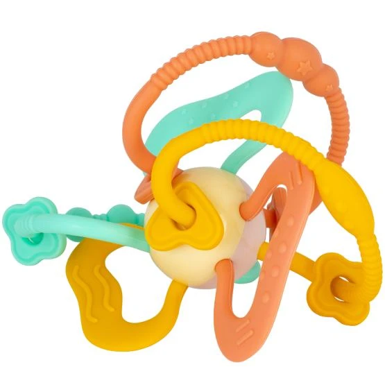 Брязкальце-гризун виготовлено з високоякісного силікону, що забезпечує безпеку та комфорт під час використання. Матеріал є гіпоалергенним та м'яким на дотик, що дозволяє малюкові безпечно гризти іграшку, полегшуючи процес прорізування зубів. Це особливо важливо в період, коли дитина активно досліджує світ через смакові відчуття.