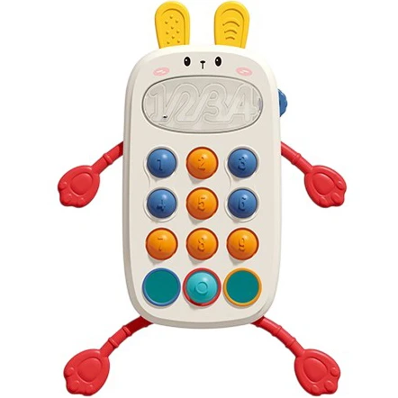 багатофункціональна сенсорна іграшка; розвиває моторику та координацію; м'який силіконовий прорізувач; інтерактивні кнопки POP IN; яскраві кольори стимулюють сприйняття; безпечні матеріали без BPA