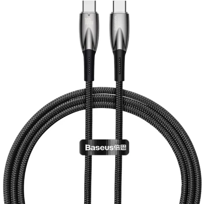 Кабель BASEUS Glimmer Series Fast Charging Data Cable Type-C to Type-C 100W 1m Black (CADH000701)