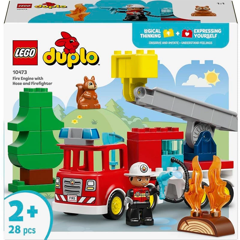 З LEGO Duplo Town Пожежна машина зі шлангом та пожежним (10473) діти отримують можливість вчитися через гру, розвивати свою уяву та навички, що знадобляться їм у майбутньому. Цей набір є чудовим способом провести час з користю, забезпечуючи годинами веселої та пізнавальної гри.