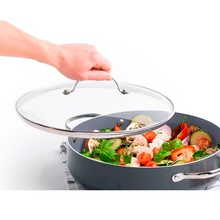 Основним матеріалом для виготовлення кришки GREEN PAN є скло, що дозволяє зберігати тепло та контролювати процес приготування їжі без необхідності піднімати кришку. Скляна поверхня додає не тільки естетичної привабливості, але й практичності, адже ви завжди можете бачити, як готуються ваші страви. Відсутність клапана випуску пари робить цю кришку ідеальною для страв, що потребують повного збереження аромату та вологи.