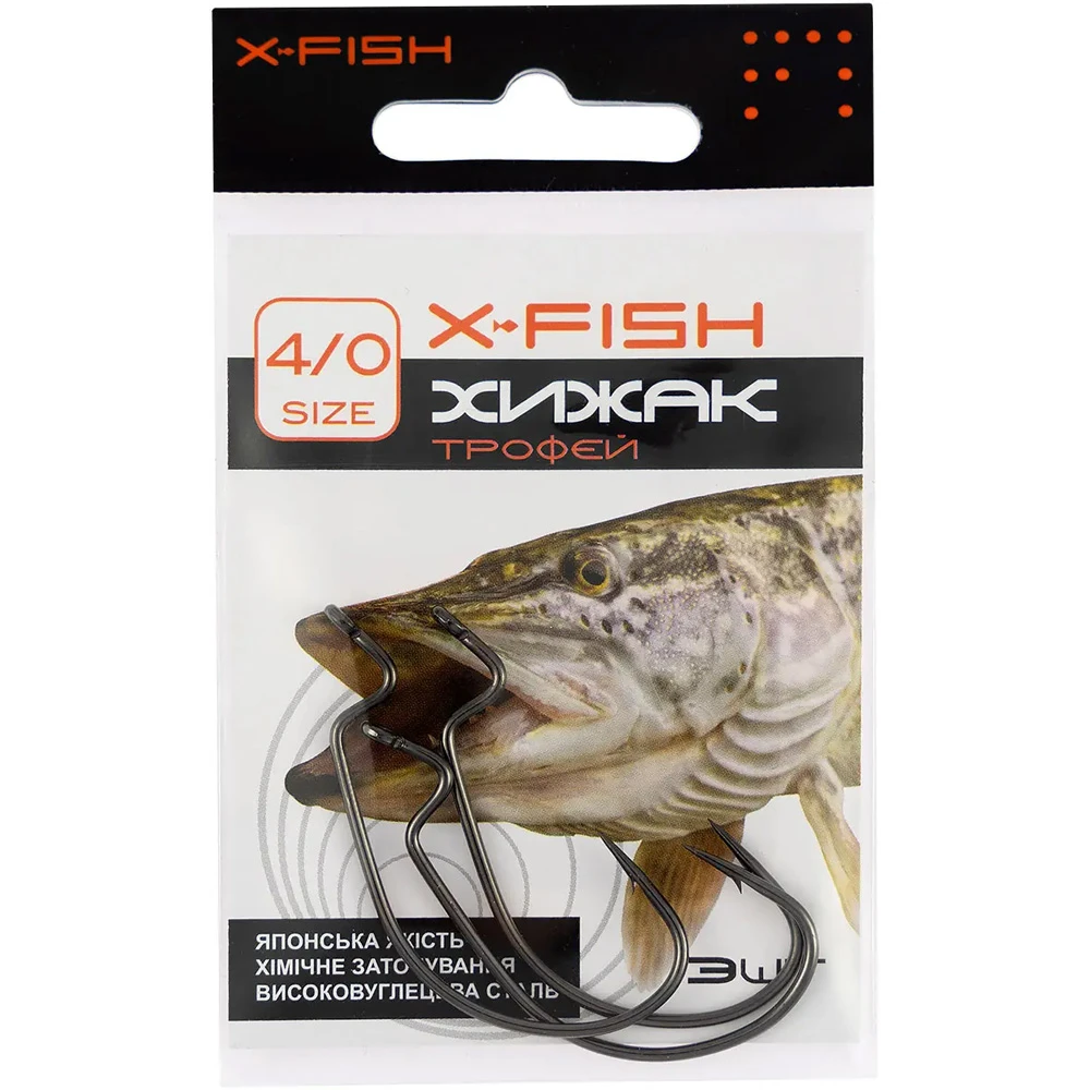 Гачки X-FISH Хижак Трофей оснащені головкою з вушком, що забезпечує легкість і зручність використання. Розмір 4/0 є оптимальним для лову великих трофейних риб, що дозволяє рибалкам насолоджуватися процесом і досягати найкращих результатів. Кожен гачок виготовлений з високоякісних матеріалів, що забезпечує їх довговічність і стійкість до корозії, навіть у найскладніших умовах.